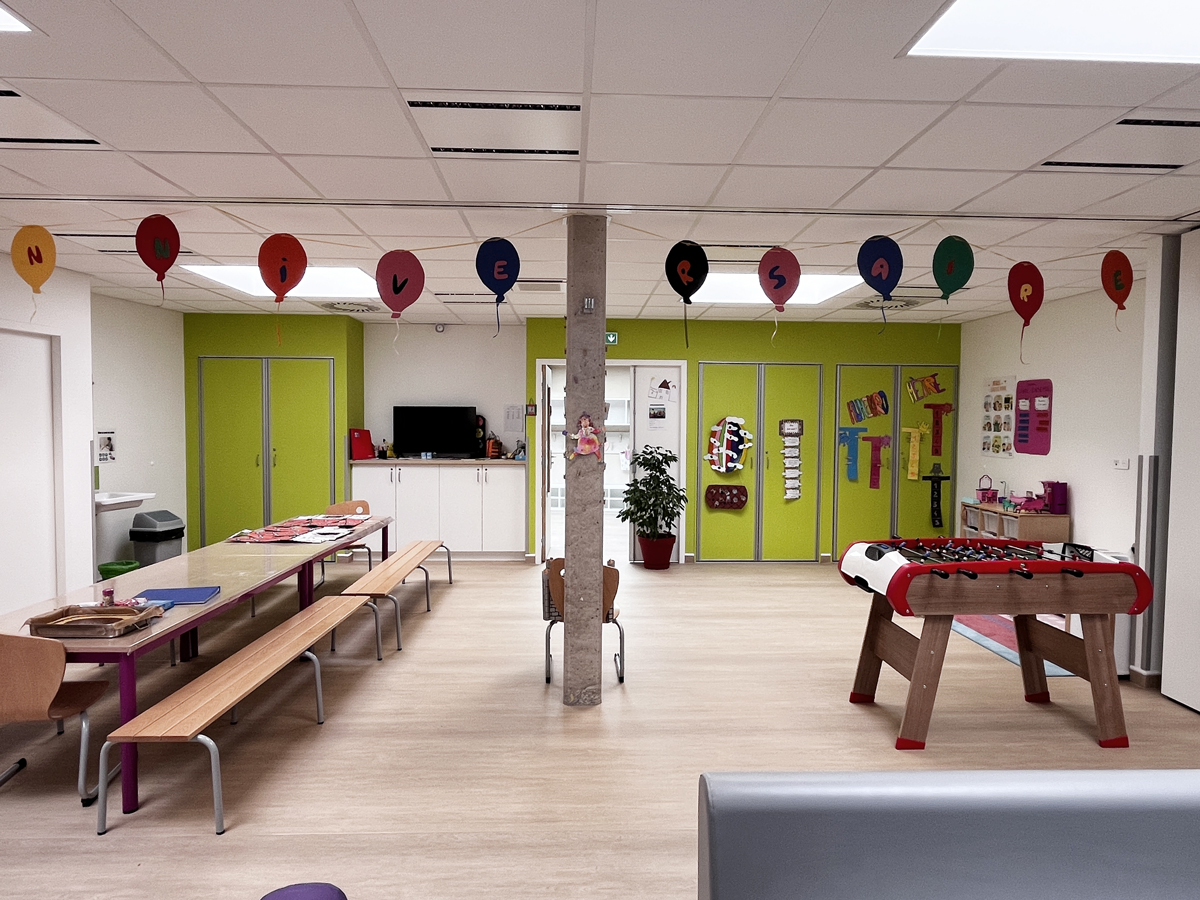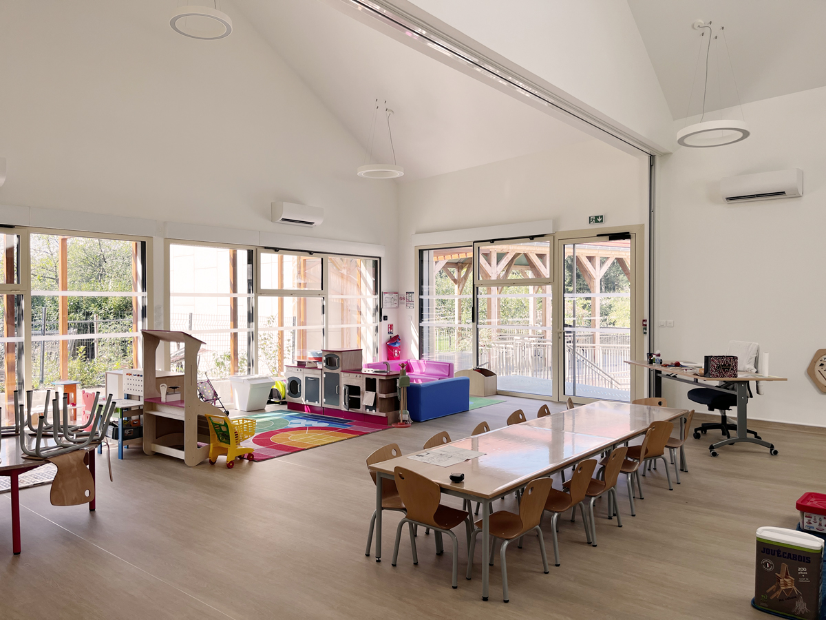 L’opération comprend la rénovation énergétique d’un immeuble existant, la création d’une extension de plain-pied de 368 m², d’un préau en structure bois, et la mise en accessibilité complète du site.